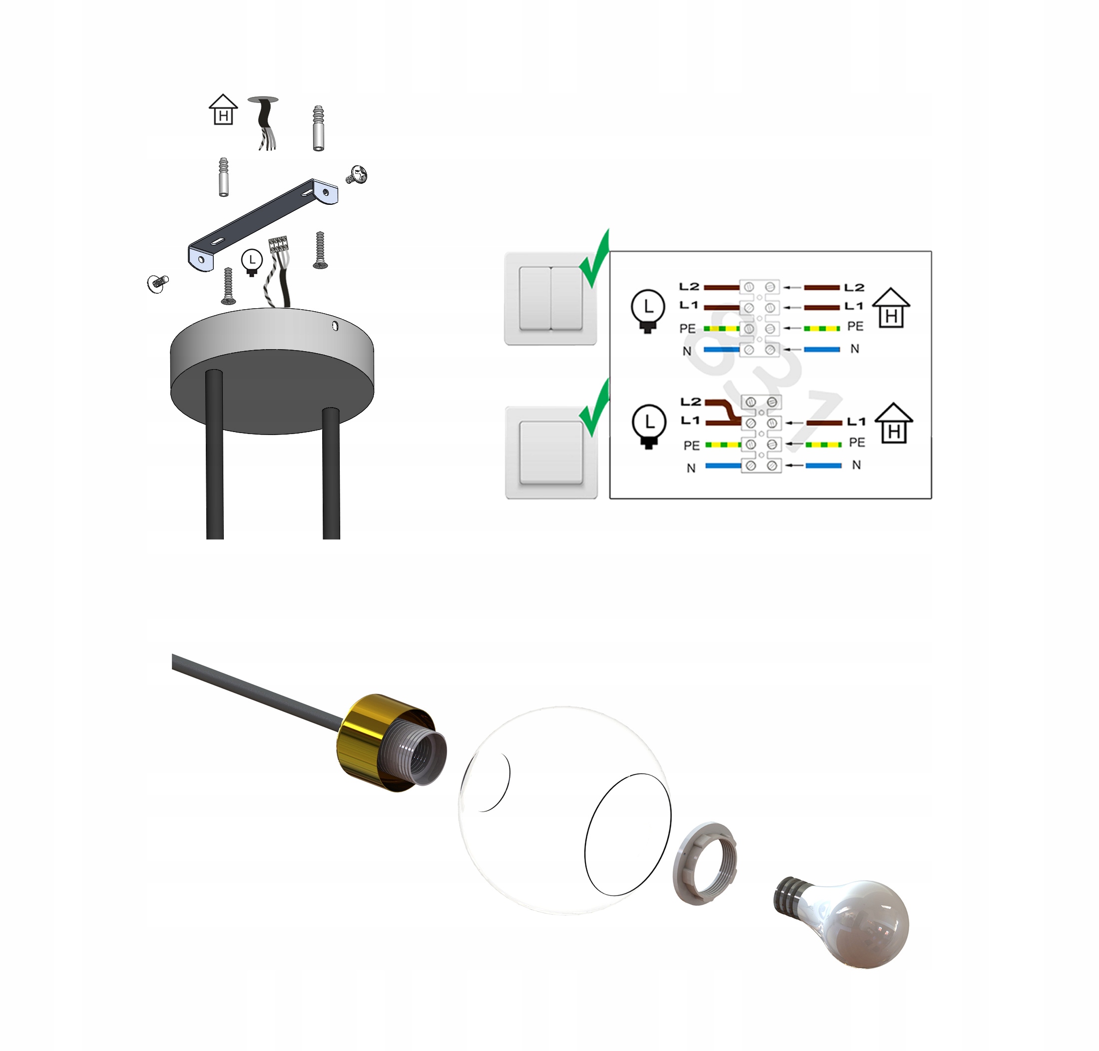 – zestaw nie zawiera żarówek oraz kołków rozporowych do montażu