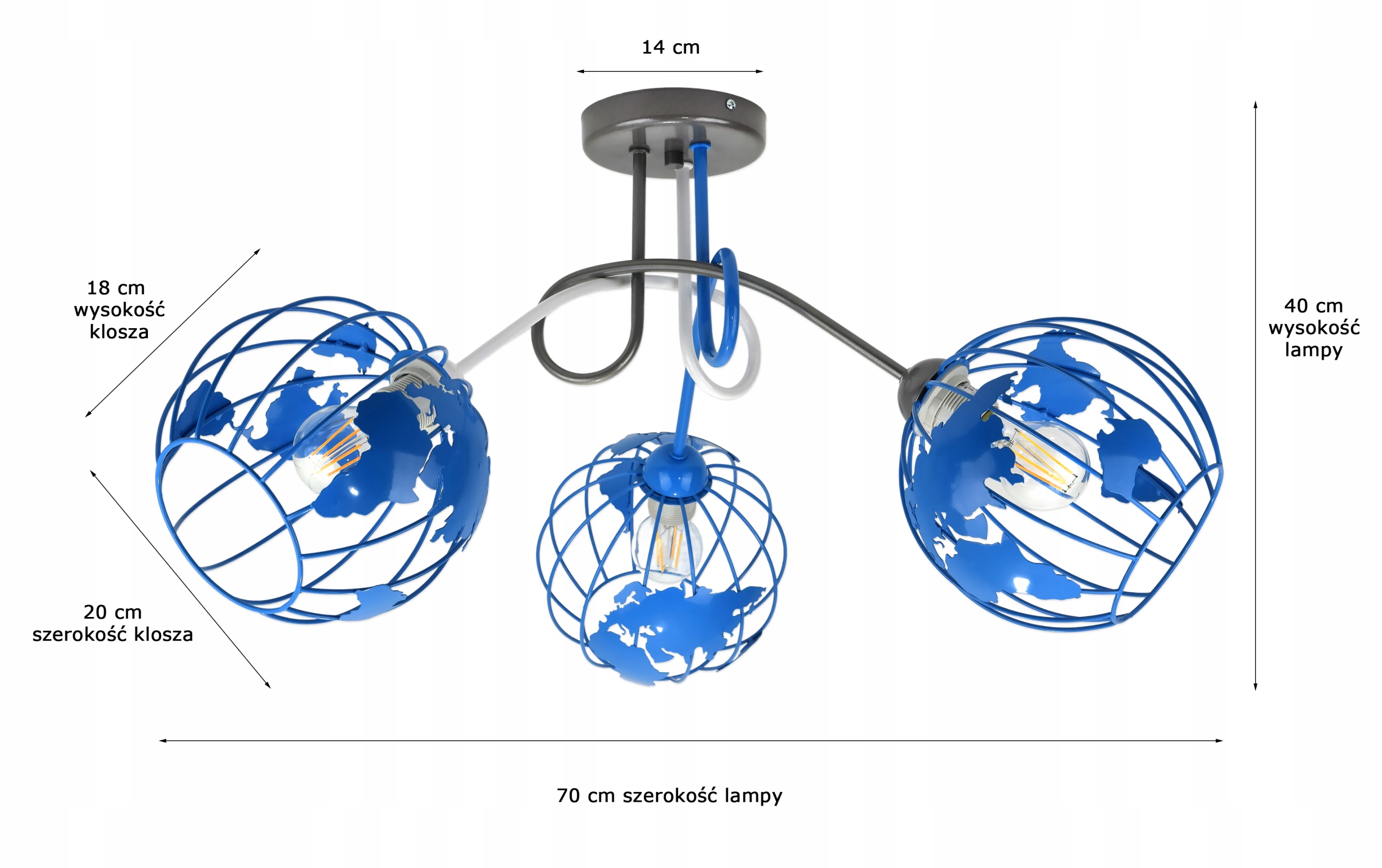 Lampa sufitowa plafon żyrandol Kula ziemska Globus nowoczesna Loft dzieci