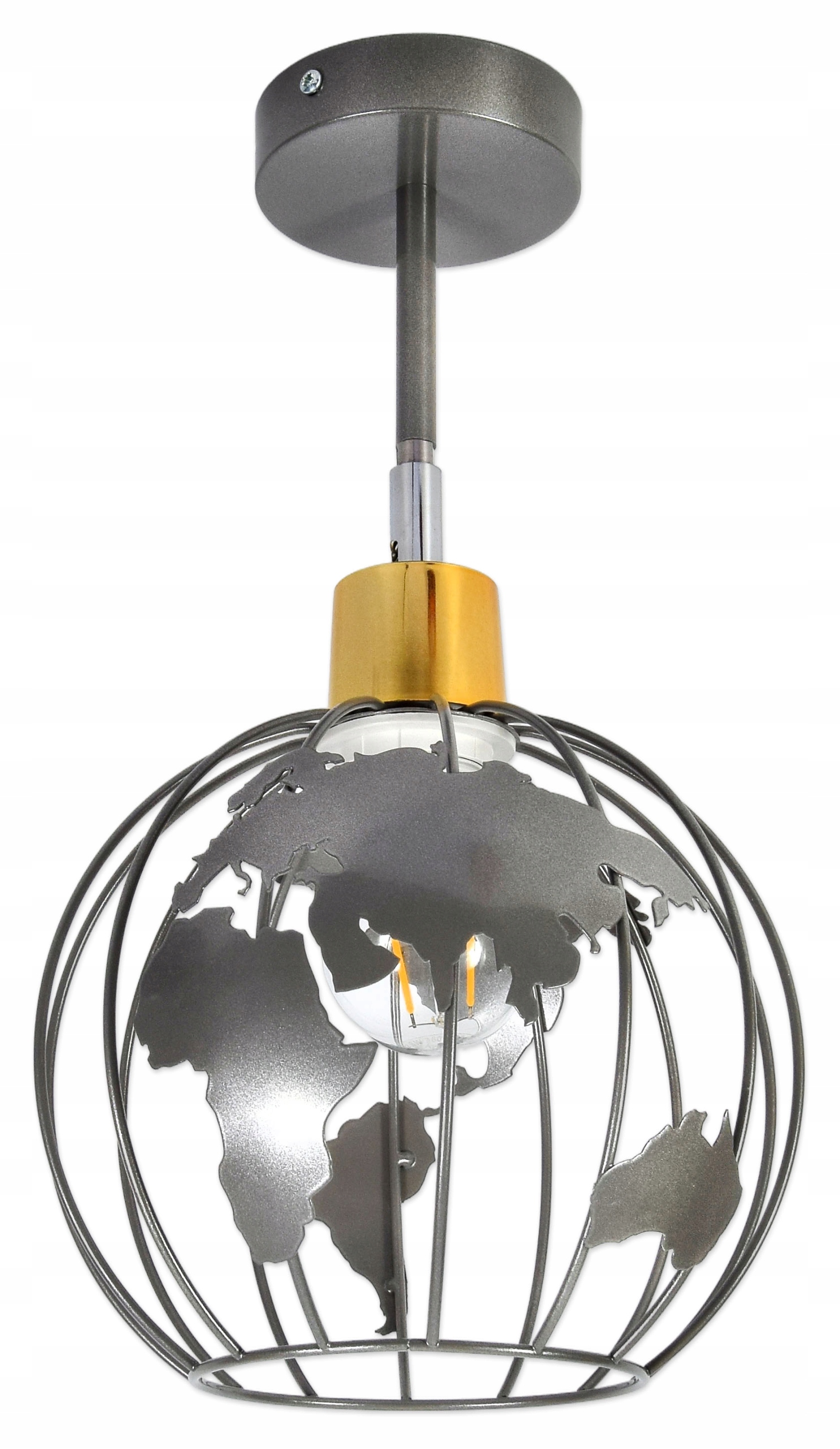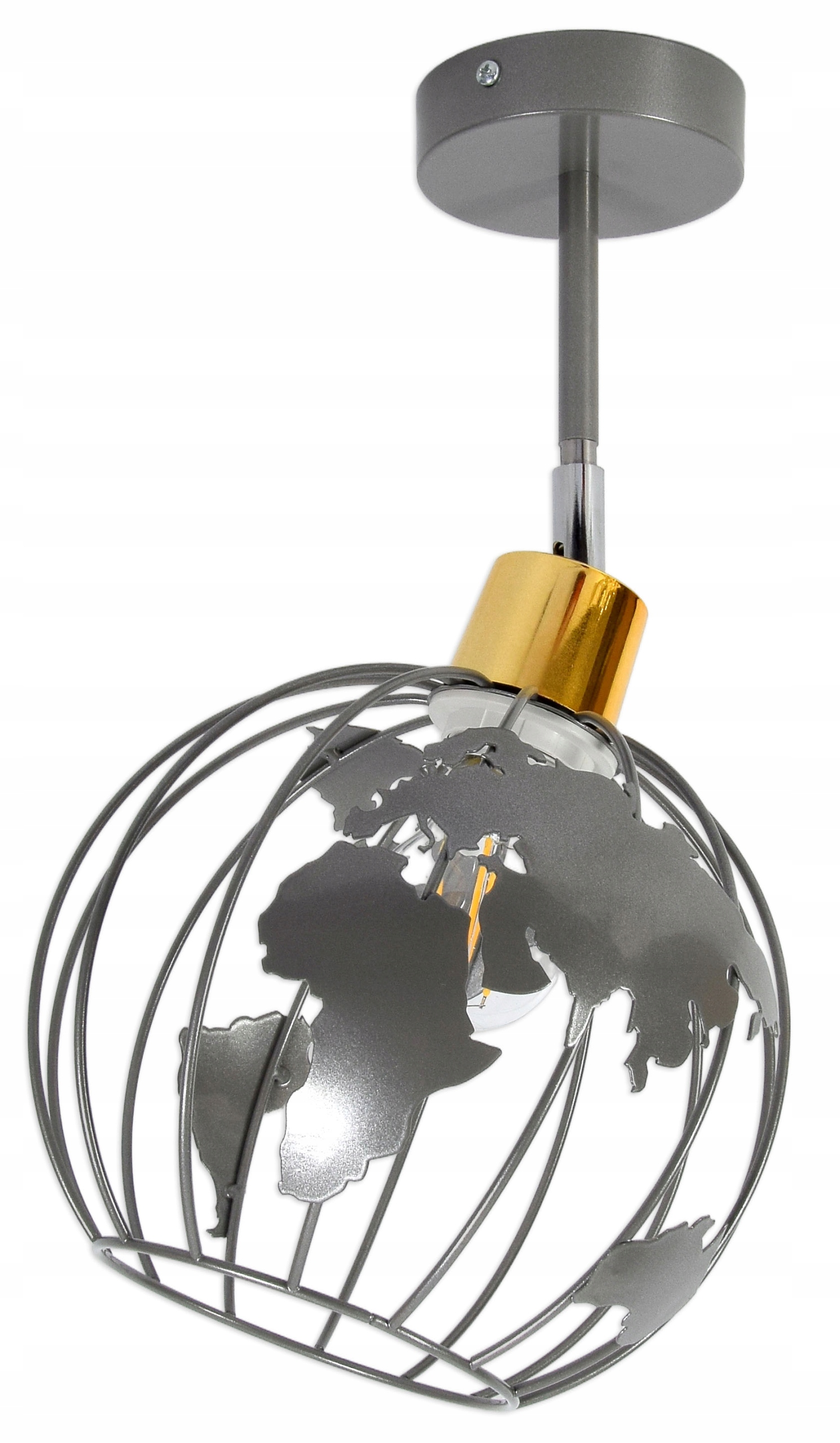• kolor szary błyszczący, srebrny przegub, złota podkloszówka – globus szary