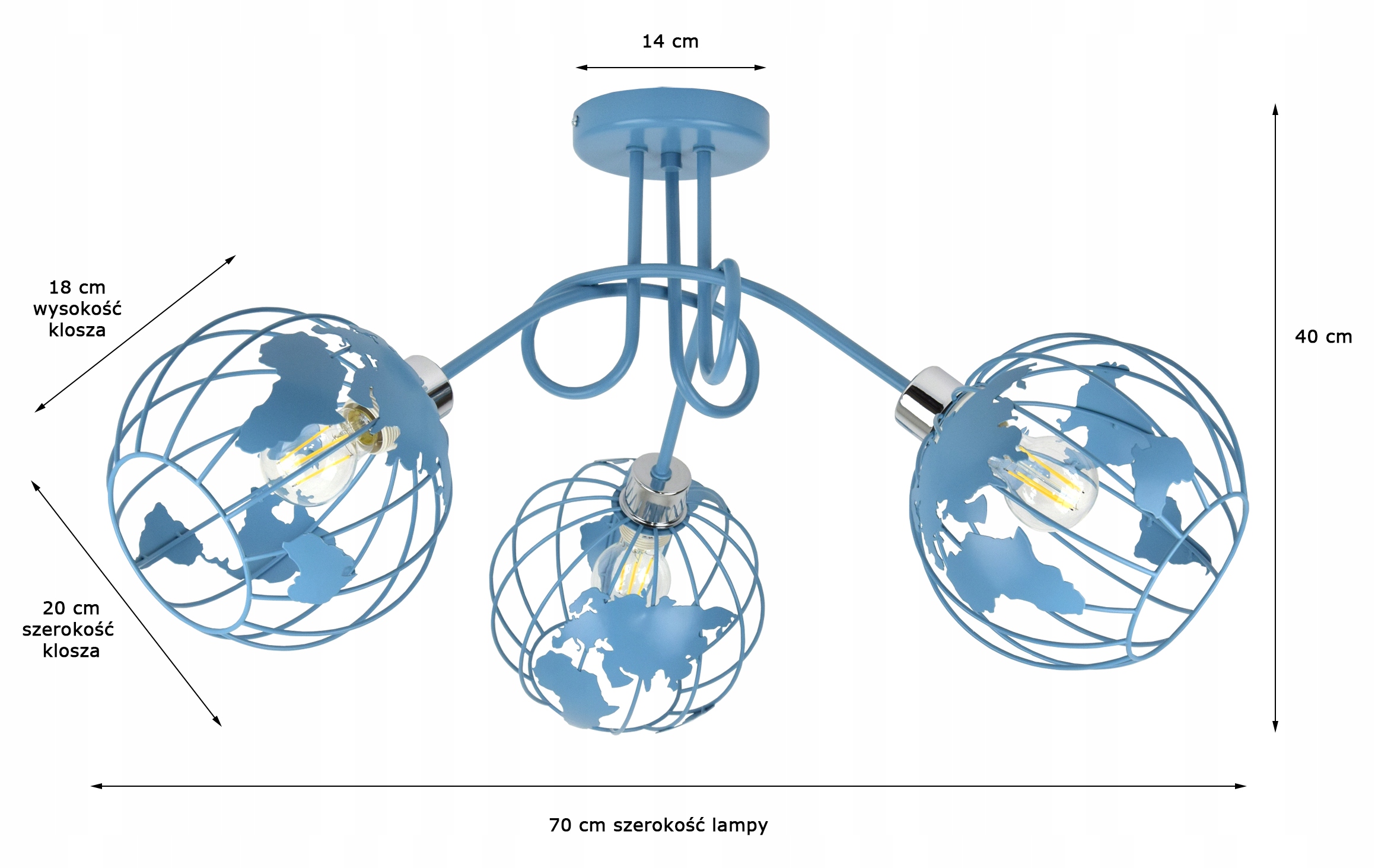 Lampa żyrandol dla dzieci Globus kula ziemska Loft Młodzieżowa Nowoczesna